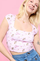 Cloud Haven Ditsy Bulldog Square Neck Tee in Sweet Pink