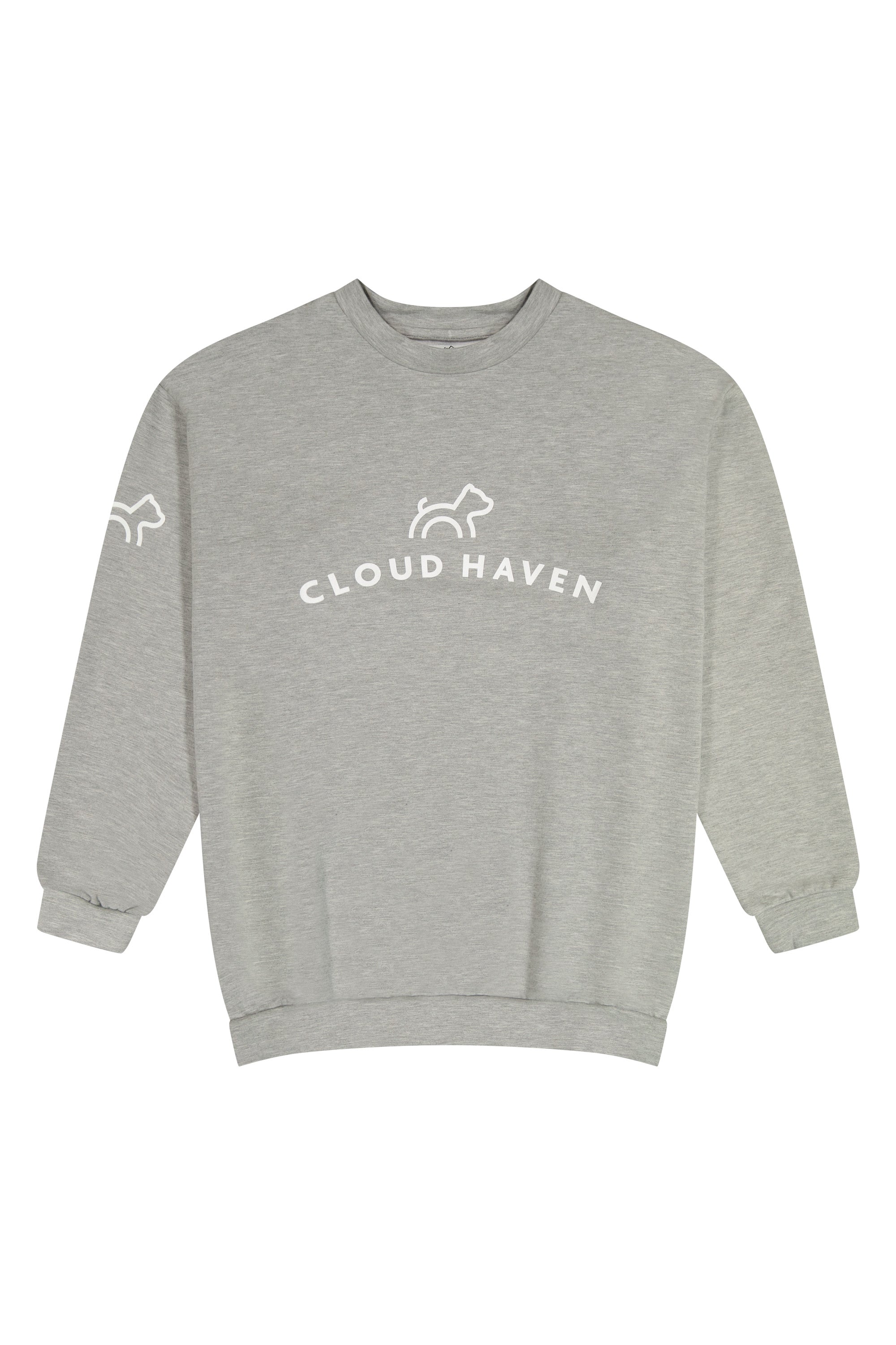 Meet our Cloud Haven Boyfriend Sweatshirt in heather gray. Cut from an ultra-soft sustainable Bamboo / Cotton stretch Fleece, and featuring our signature dog logo on the center front & sleeve, this sweatshirt symbolizes that together we’re making a difference. Wrap yourself in comfort and feel good knowing this style gives back.