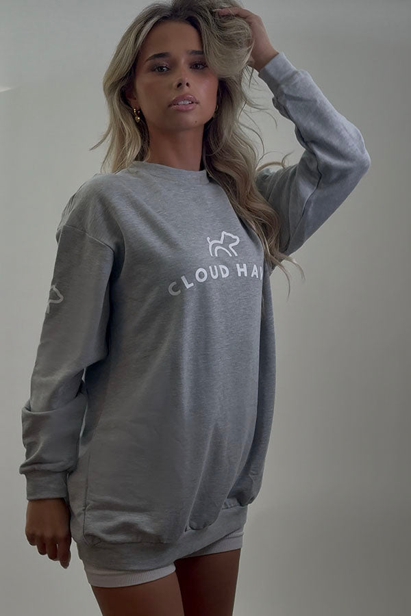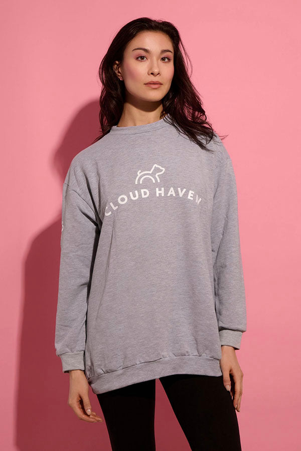 Cloud Haven Boyfriend Logo Sweatshirt in Heather Gray