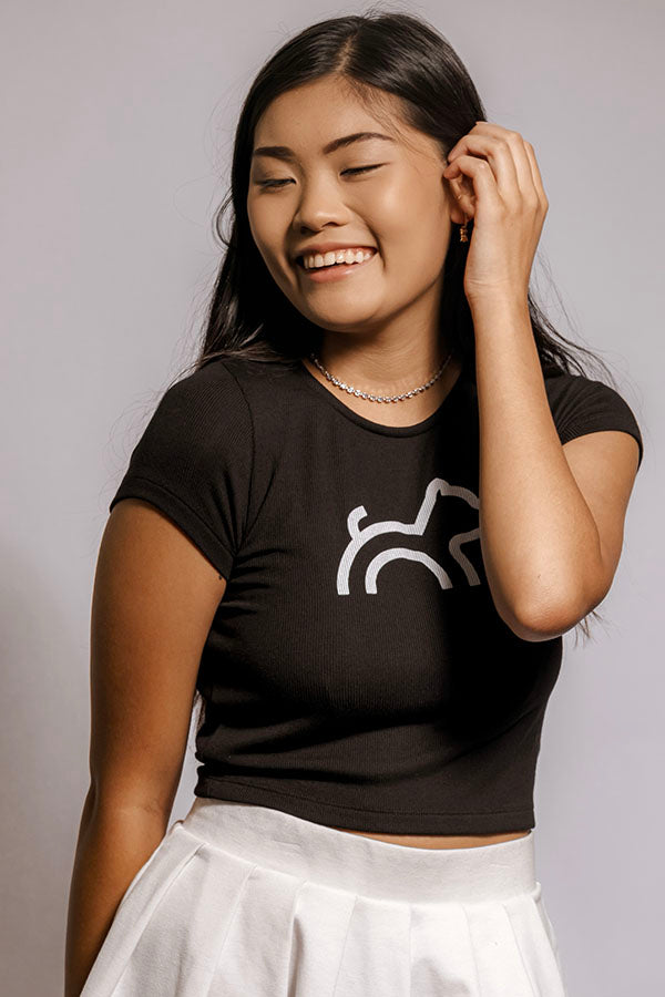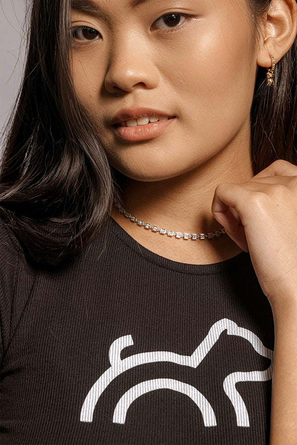 Meet our Cloud Haven Rib Logo Tee in black. Cut from an exquisitely soft Tencel Modal and Spandex blend, and featuring our white dog logo, this tee symbolizes that together we’re making a difference. Wrap yourself in comfort and feel good knowing this style gives back.