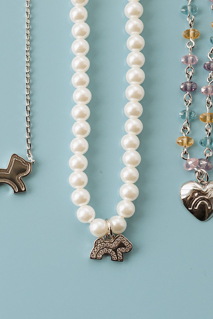 Cloud Haven Faux-Pearl Logo Pendant Necklace Silver