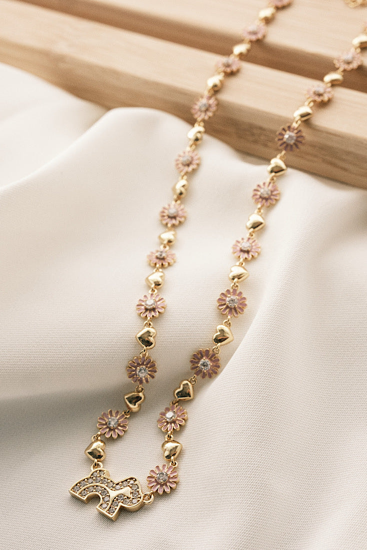 Cloud Haven Crystal Daisy Logo Necklace Pink