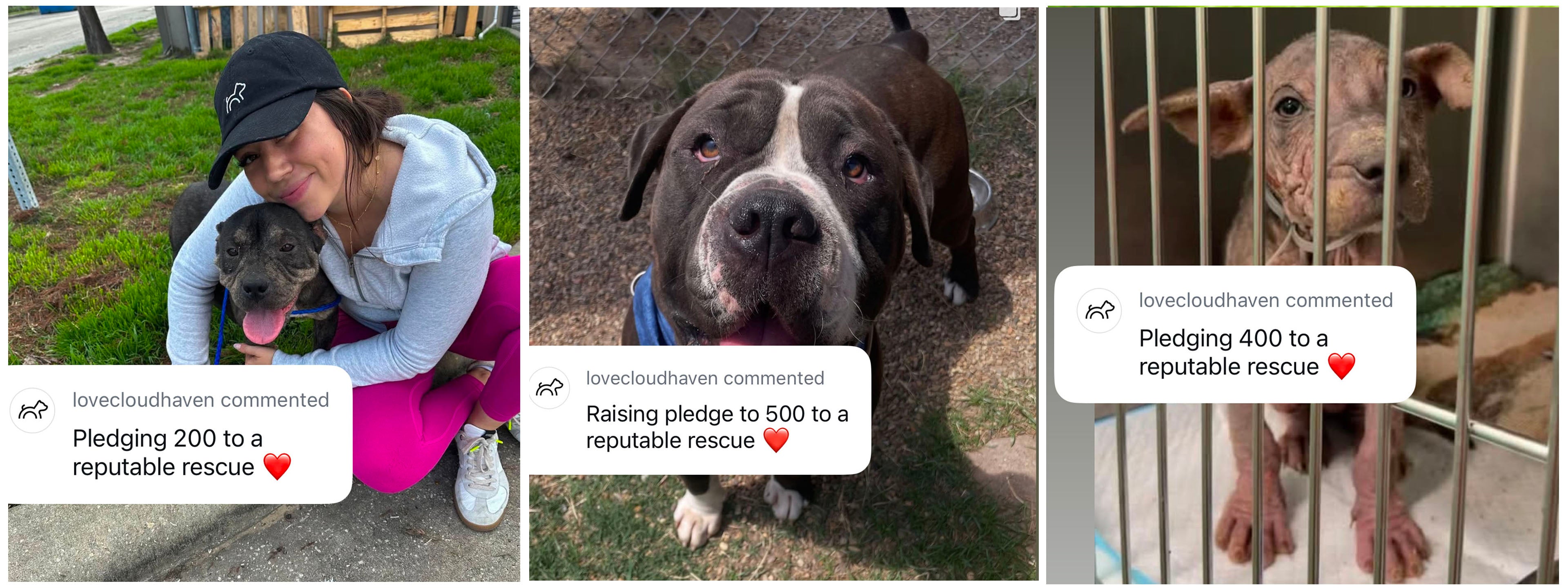 A minimum of 10% of every purchase is directly converted to a “pledge.” Pledges are the most important and effective component of our brand mission. Our pledges range from $200-$1,500+ allowing rescue organizations to have a guaranteed base of funding. We have helped more than 1,300 shelter dogs find love again through our pledges.