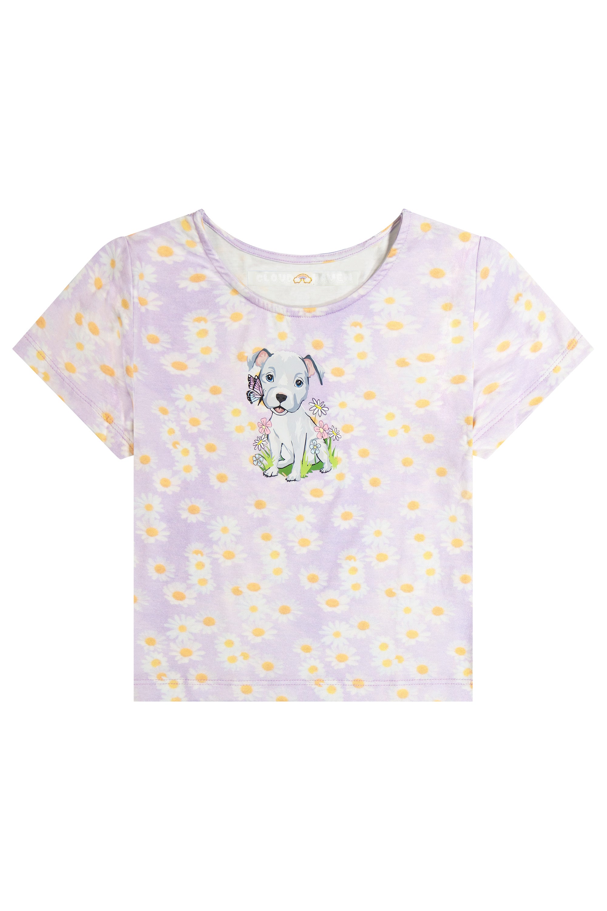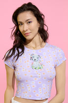 Cloud Haven Daisy Pittie Baby Tee | Daisy Graphic Crop Top Purple