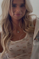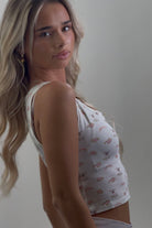 Our Ditsy Rainbow Tank in white features a scooped front and back with a slim, cropped fit.  This tank is perfect for a hot, summer day or layering with your favorite hoodie. Created from Tencel and organic cotton, this tank prioritizes comfort and wearability throughout every season.