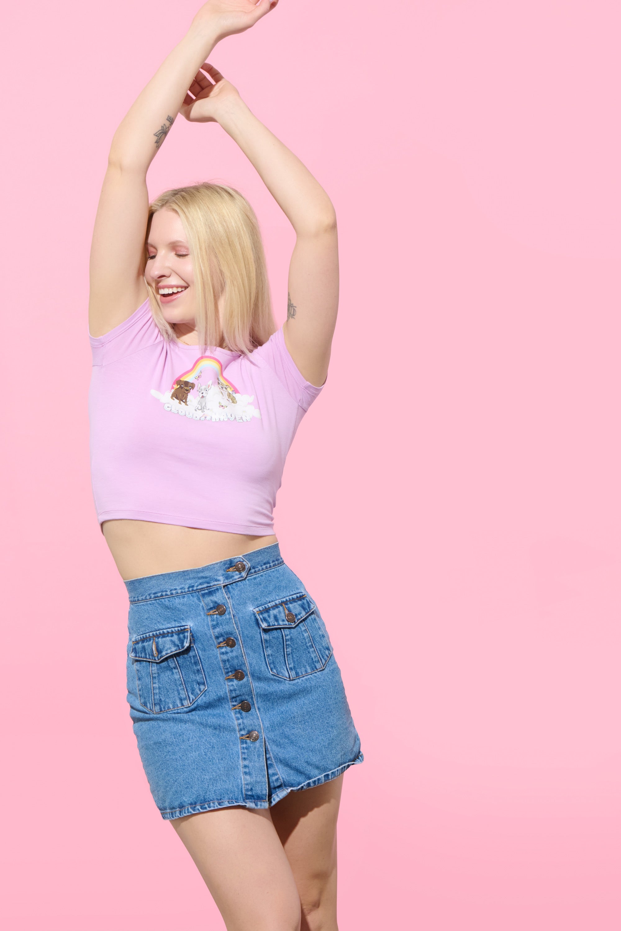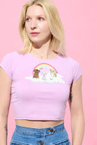 Cloud Haven Heavenly Baby Tee | Rainbow Graphic Crop Top Pink