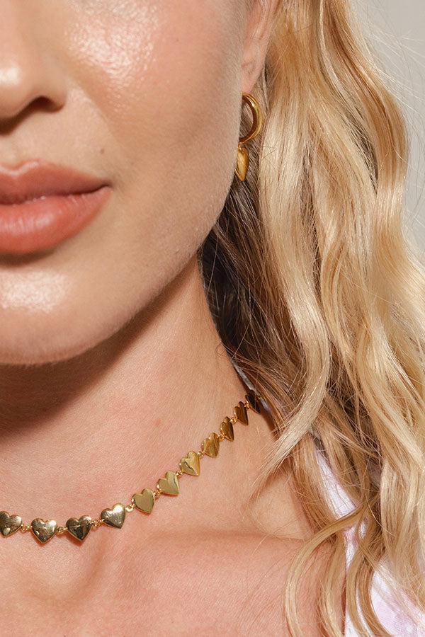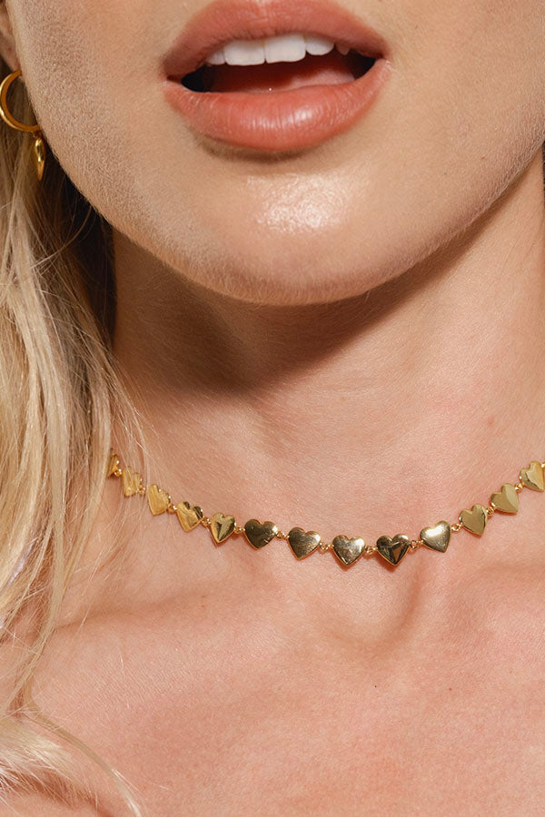 Heart Studded Choker Necklace Gold