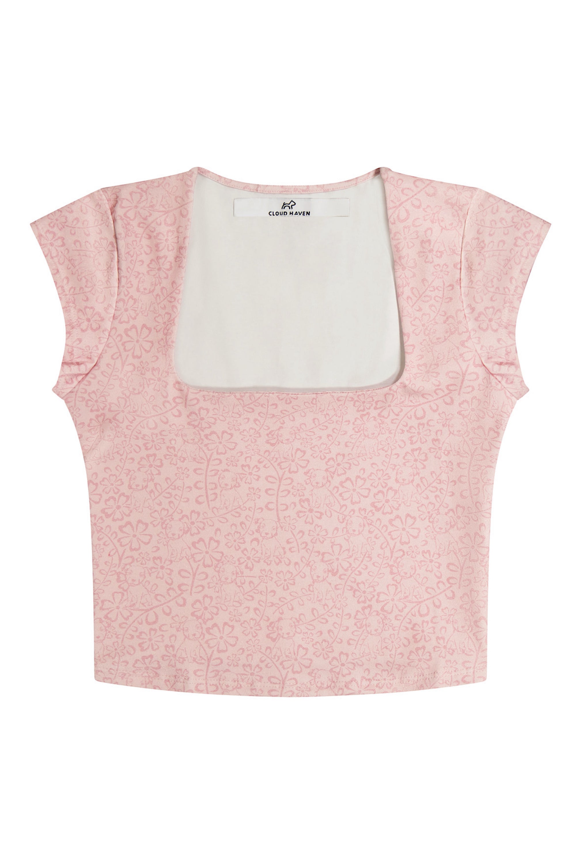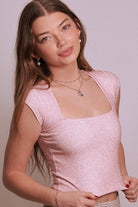 Cloud Haven Jacquard Square Neck Tee in Baby Pink